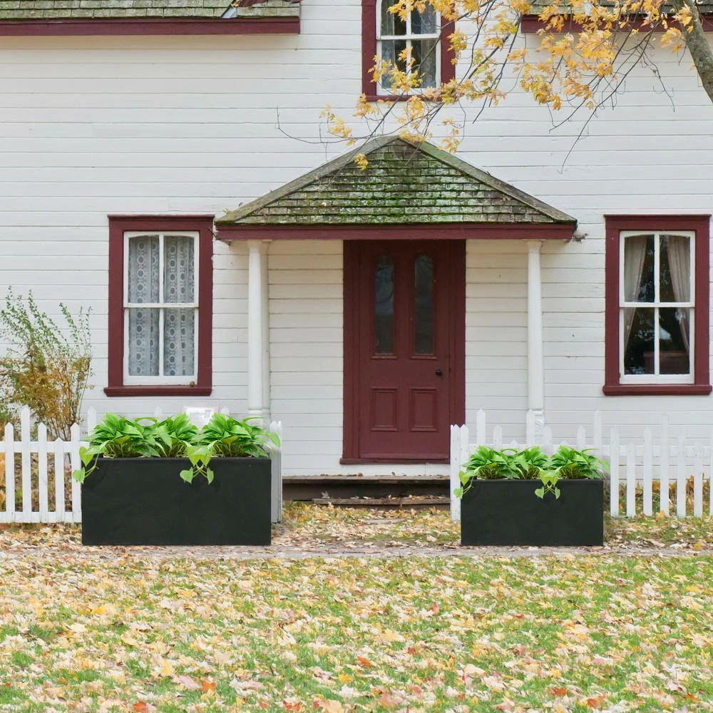 These elegant rectangle planters have authentic concrete finish with visible pores that make them beautiful contemporary pieces. The look and feel is true concrete but it weighs substantially less than it looks, making it easier to move around. It is smooth instead of rough concrete potters you might be used to. The size is very generous and can hold a good amount of plants without looking crowded. Would look great on apartment balcony or large backyard patio. Create a modern space using these long low planters. The straight lines and solid finish are a hot trend in modern landscape designs. Ideal for succulents and delicate plants that need room to grow. Made of lightweight concrete and weather-resistant fiberglass through an ecofriendly manufacturing process. Has no rubber, plastic and steel. This material has all the advantages of concrete such as strength, durability, weather and damage-resistance, has strong UV-resistant ability and stay well in wind, rain, hot and cold season.