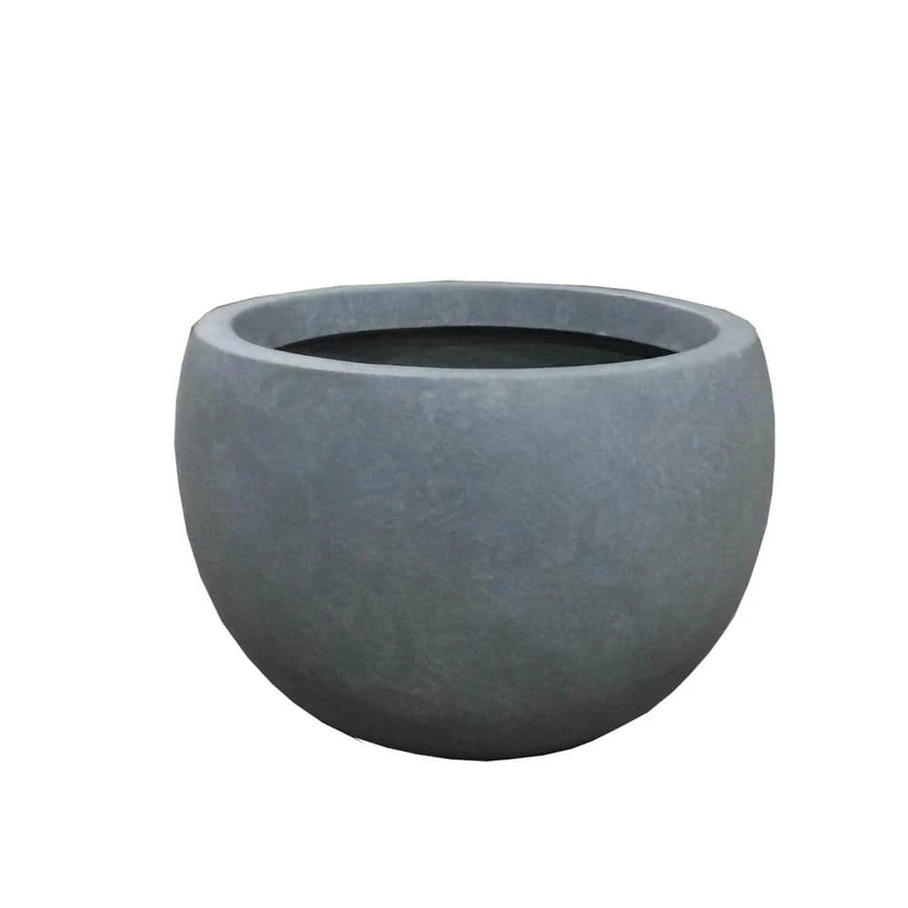 Low bowl planters with smooth lines and a solid charcoal finish that are ideal for endless succulent designs. Place on your patio or throughout your garden to add variety and color. Made of lightweight concrete through an ecofriendly manufacturing process. This composite material has all the advantages of concrete such as strength, durability, weather and damage resistance, yet much easier to move around due to its lighter weight.