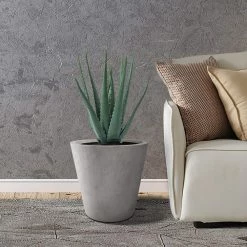 KANTE 9.8 in. W Round Charcoal Lightweight Concrete/Fiberglass Indoor Outdoor Elegant Planter