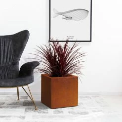 KANTE 20 in. H Square Charcoal Lightweight Concrete/Fiberglass Indoor Outdoor Elegant Tall Planter