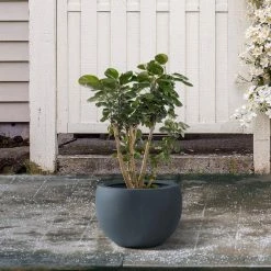KANTE 9.8 in. W Round Charcoal Lightweight Concrete/Fiberglass Indoor Outdoor Elegant Planter