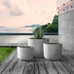 KANTE 9.8 in. W Round Pure White Concrete/Fiberglass Indoor Outdoor Modern Seamless Planter
